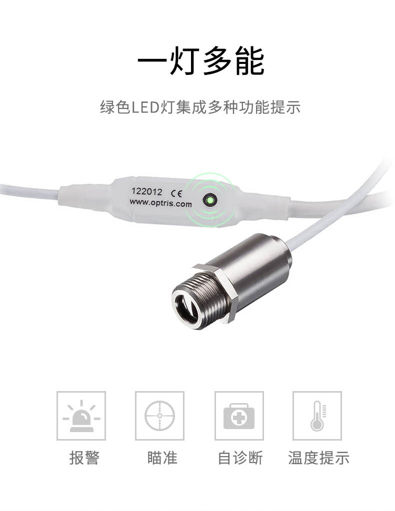 ●綠色LED燈提供報(bào)警提示、瞄準(zhǔn)提示、自診斷提示以及測量溫度提示的功能