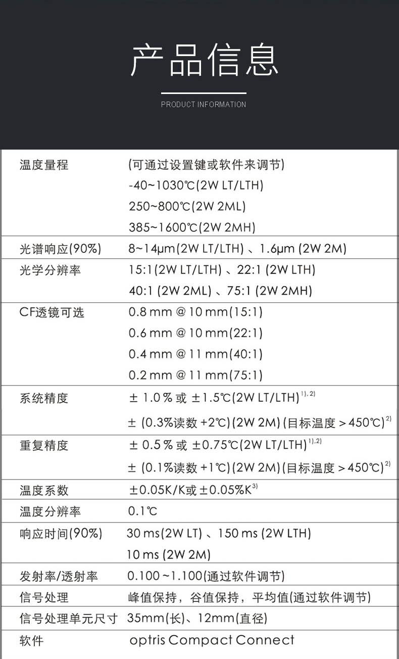 ●德國歐普士optris CTlaser 1M/2M 測高溫高分辨率紅外測溫儀